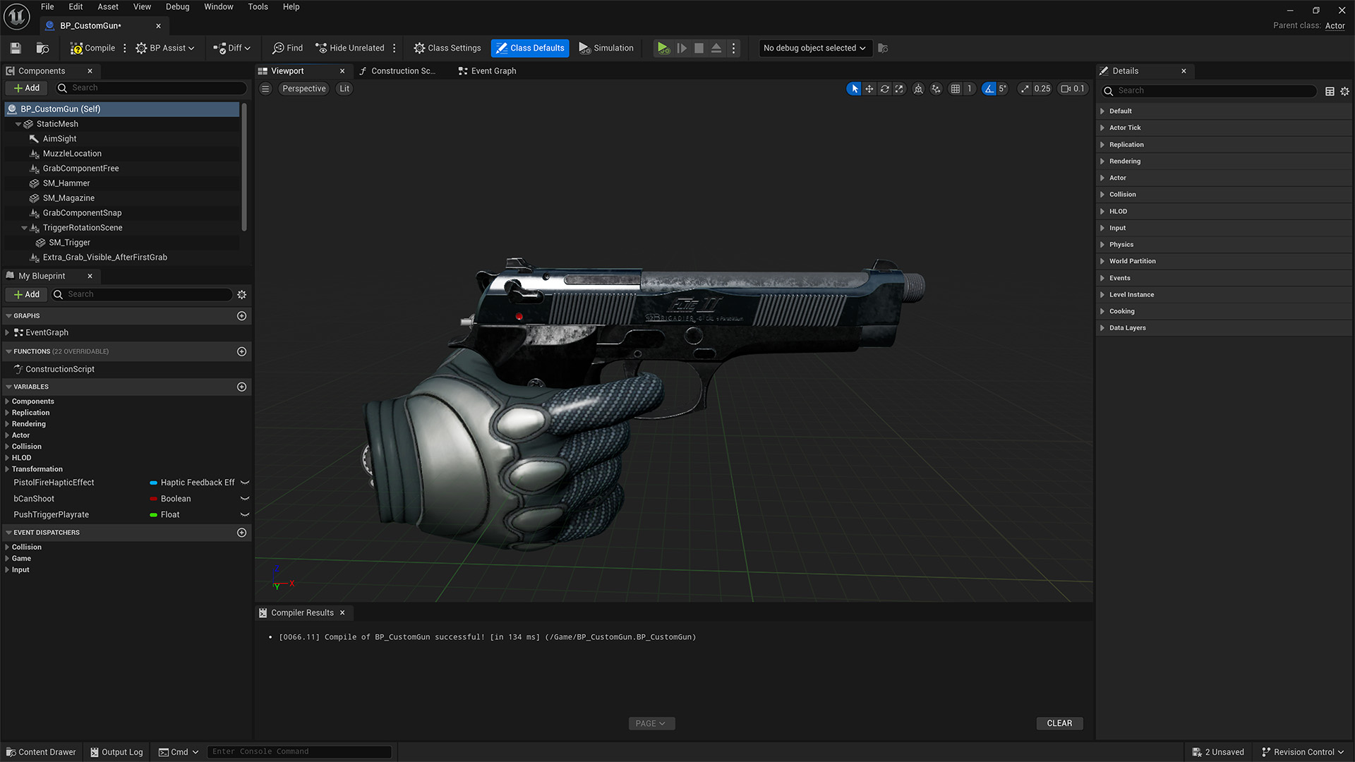 - Set enum Hand Mesh Visual Settings → Show Custom Hand and choose your right-hand skeletal mesh.